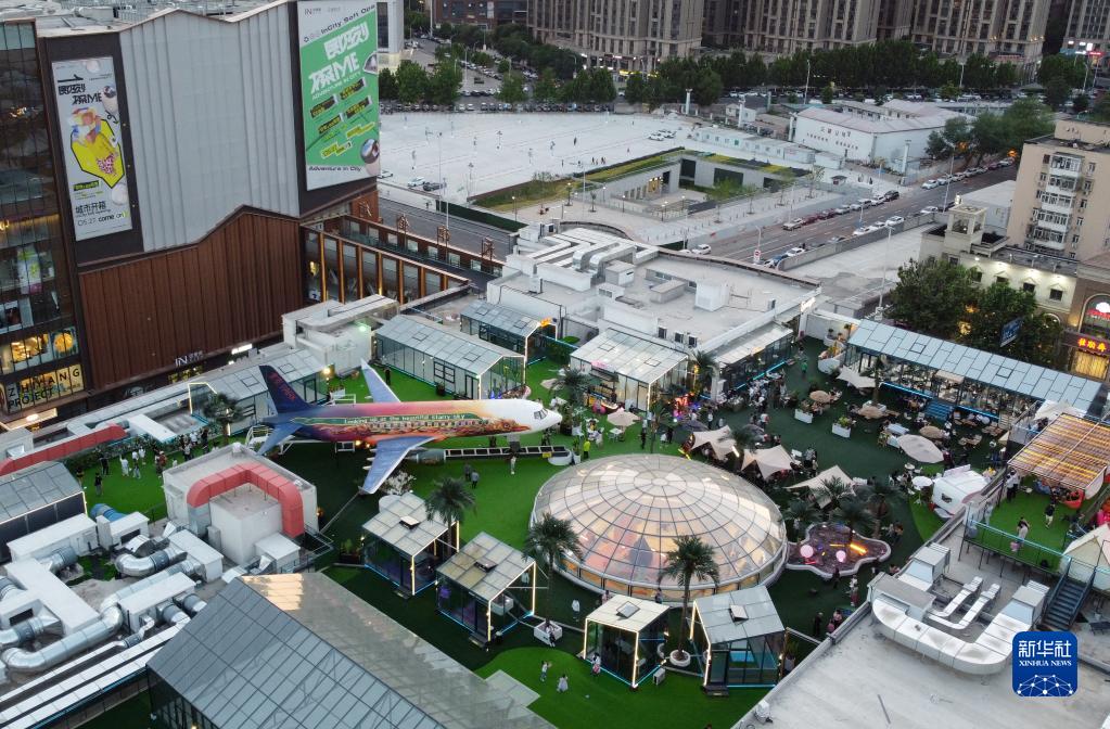 市民在天津市和平區金街商圈的“印象城”樓頂休閑游玩(6月2日攝,無(wú)人機照片)。