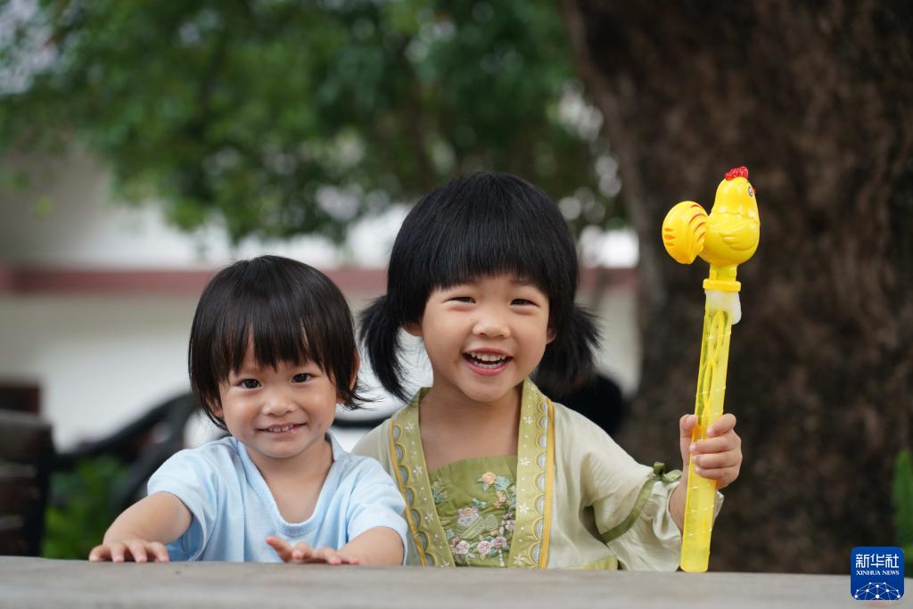6月3日,小朋友在江西省萍鄉市蘆溪縣蘆溪鎮東陽(yáng)村里玩耍。