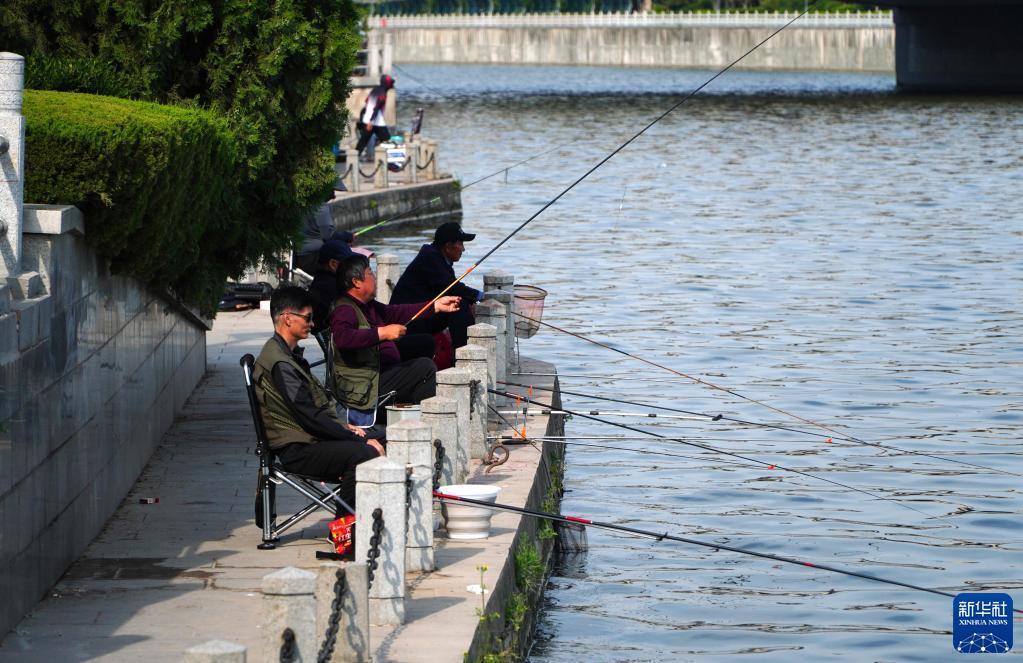 6月4日,市民在小清河濟南段岸邊垂釣。