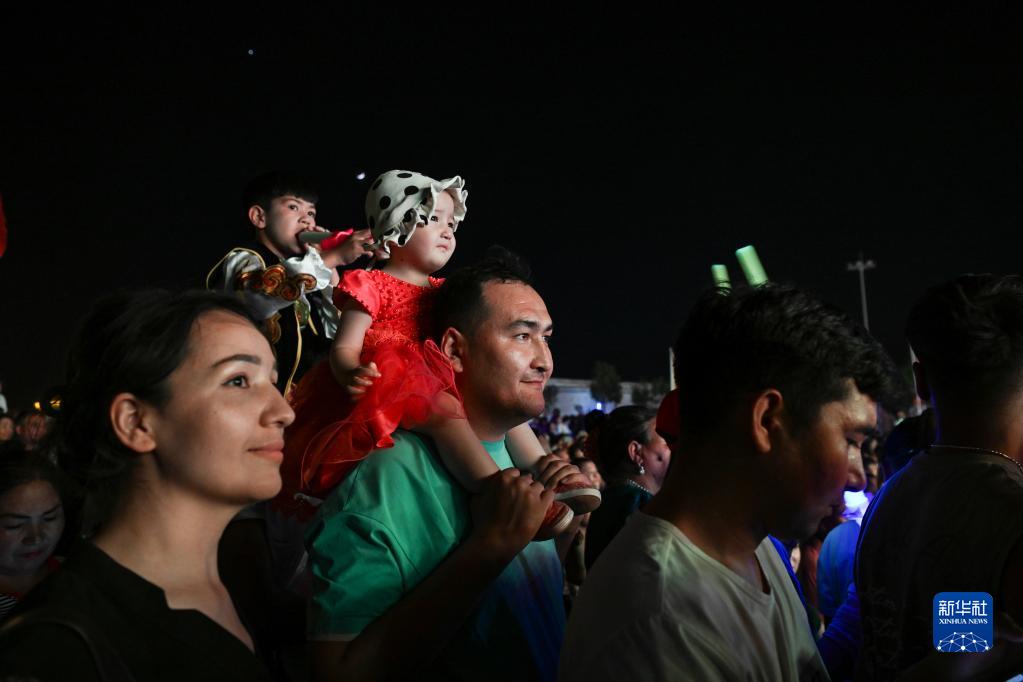 5月22日,在新疆喀什地區麥蓋提縣N39°沙漠旅游景區,當地居民觀(guān)看環(huán)塔拉力賽歡迎晚會(huì )上的文藝表演。