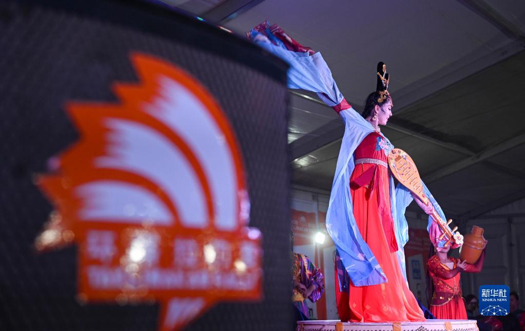 5月24日,舞蹈演員在2023年環(huán)塔拉力賽前三個(gè)賽段“金頭盔”頒獎儀式上演出。