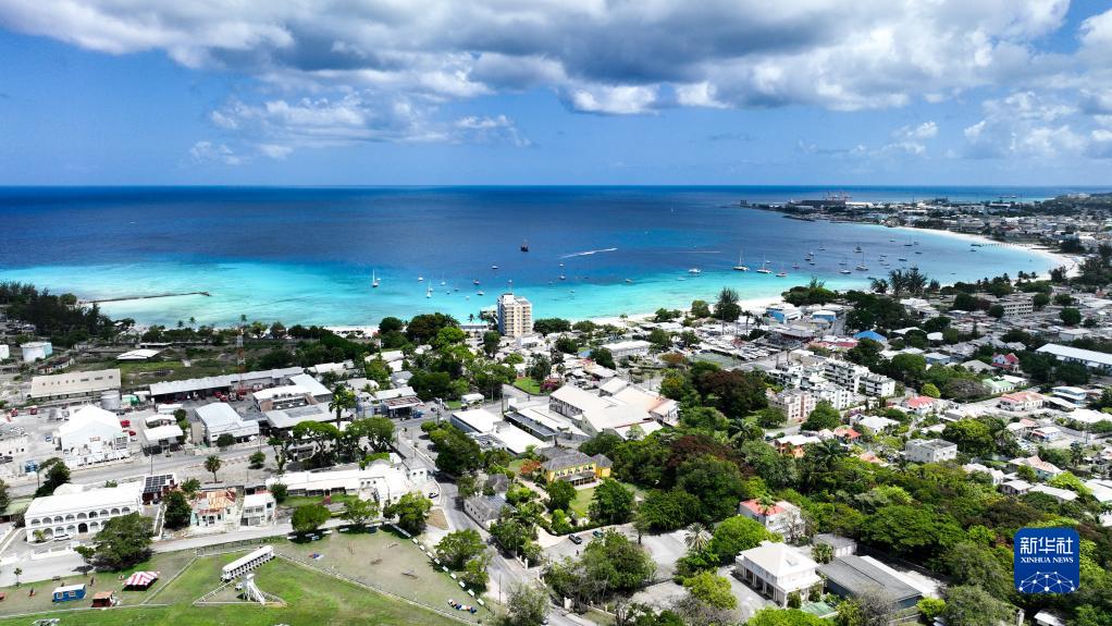 這是5月28日拍攝的巴巴多斯首都布里奇敦的海岸線(xiàn)風(fēng)光(無(wú)人機照片)。