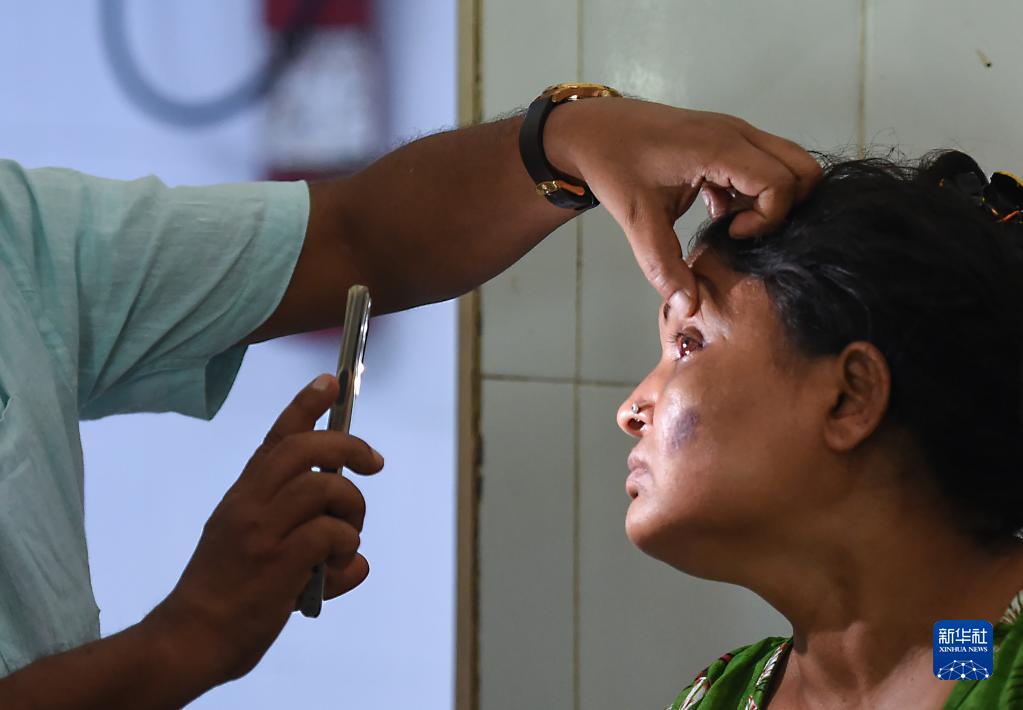6月4日,列車(chē)脫軌相撞事故的傷者在印度奧迪沙邦巴拉索爾的一家醫院接受醫生檢查。
