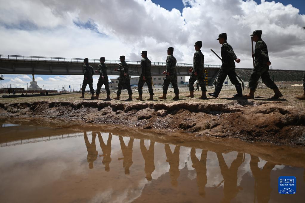 6月4日,武警青??傟牶N髦ш牴俦凇笆匦l長(cháng)江源”主題黨日活動(dòng)中。