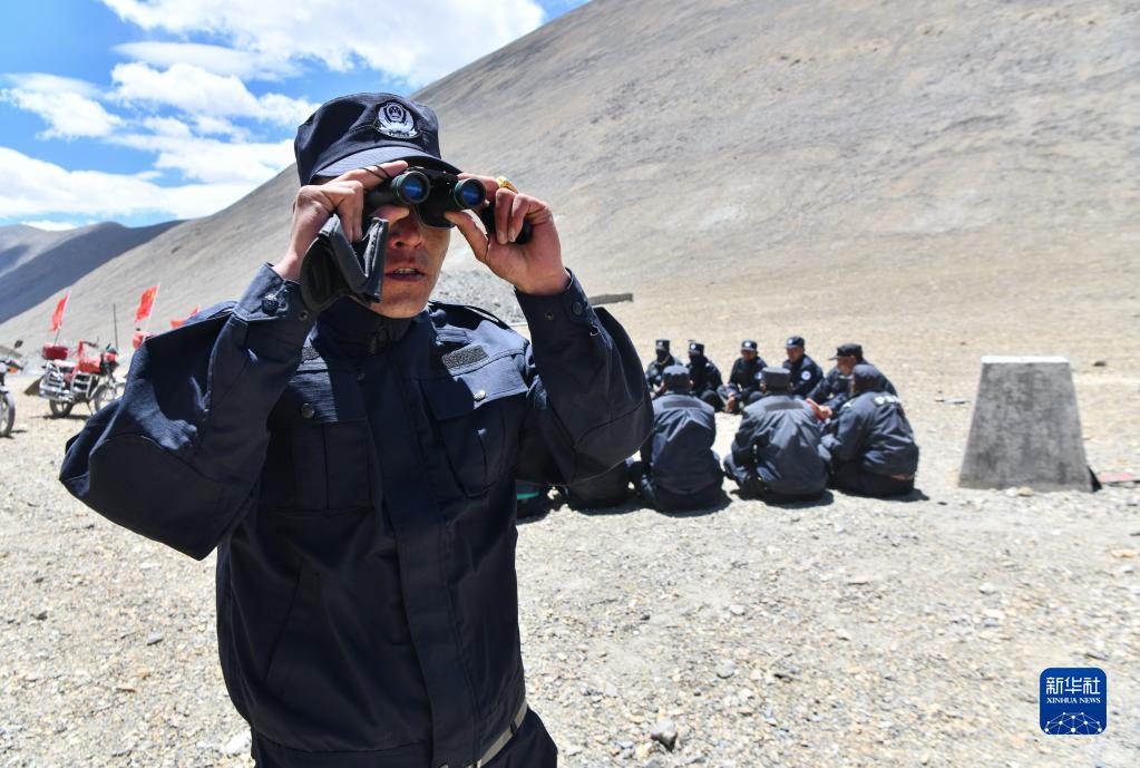 6月2日,在33號界樁處,一名護邊聯(lián)防隊隊員使用望遠鏡巡查。