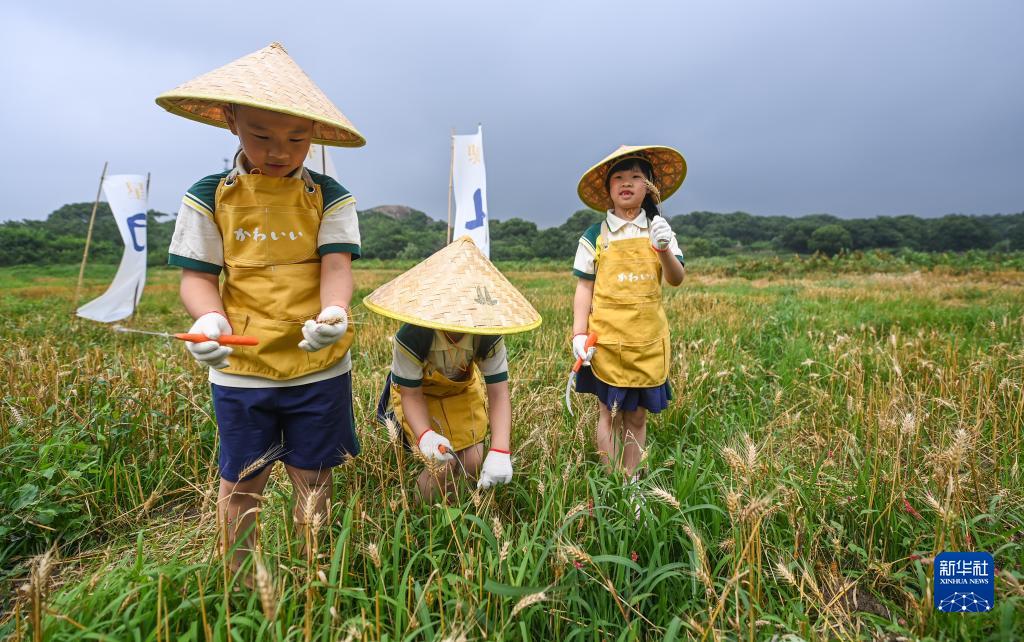 6月5日,芒種節氣來(lái)臨前,浙江省湖州市仁北幼兒園的孩子們在家長(cháng)和老師的帶領(lǐng)下來(lái)到道場(chǎng)鄉格林農莊開(kāi)展校園精細化特色課程——芒種田野實(shí)踐活動(dòng)。孩子們在田野里收獲小麥和插秧,感受收獲與耕種的忙碌,這也屬于“閱讀、運動(dòng)、勞動(dòng)”精細化特色課程的重要組成部分。