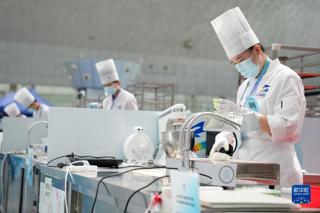 6月5日,選手在糖藝/西點(diǎn)制作比賽項目現場(chǎng)進(jìn)行比賽。