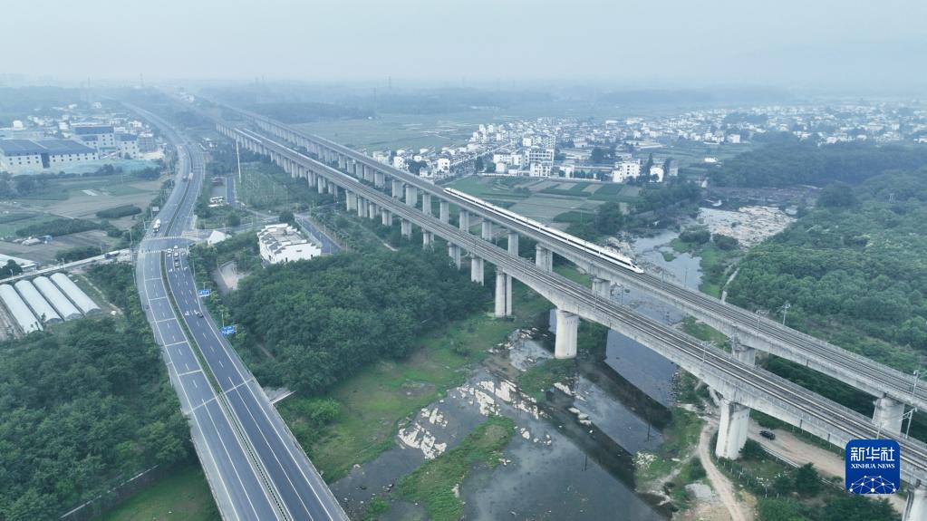 6月4日,從安徽省黃山市開(kāi)往浙江省杭州市的列車(chē)從黃山北站駛出。