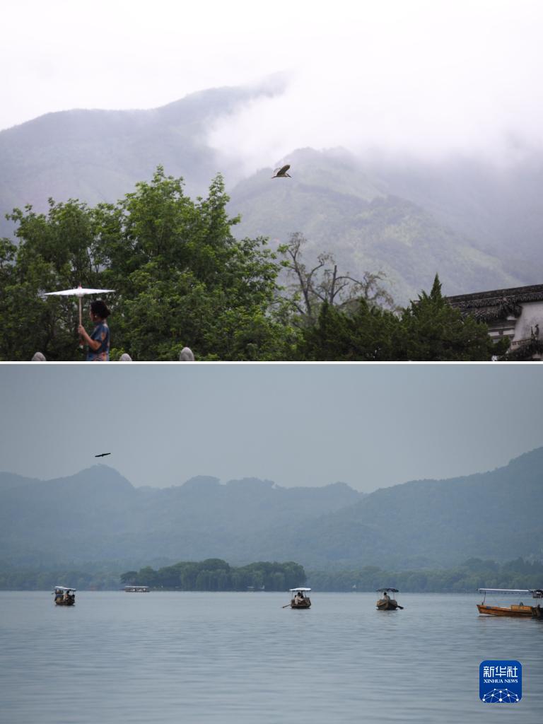 拼版圖片:上圖為5月31日拍攝的安徽省黃山市宏村風(fēng)景(新華社記者 張端 攝);下圖為6月4日拍攝的浙江省杭州市西湖風(fēng)景(新華社記者 黃宗治 攝)。
