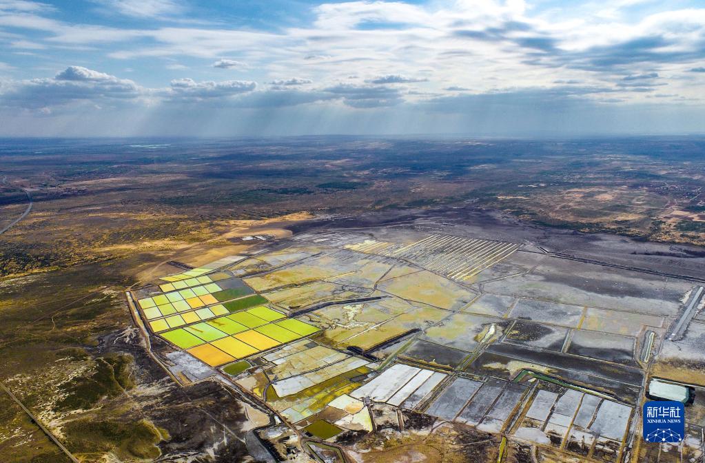 6月5日拍攝的北大池鹽湖景色(無(wú)人機照片)。