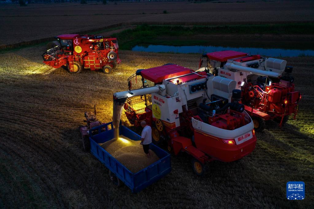5月31日夜,河南省駐馬店市正陽(yáng)縣付寨鄉章寨村村民在搶收小麥。