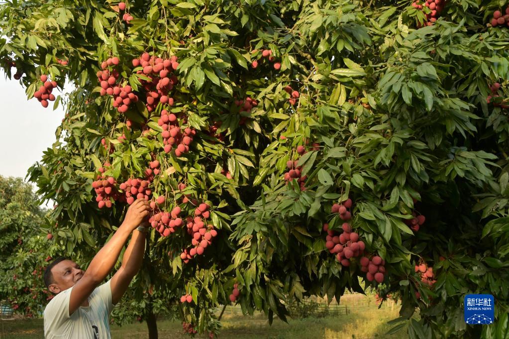 6月4日,農民在孟加拉國迪納杰布爾的果園里采摘荔枝。