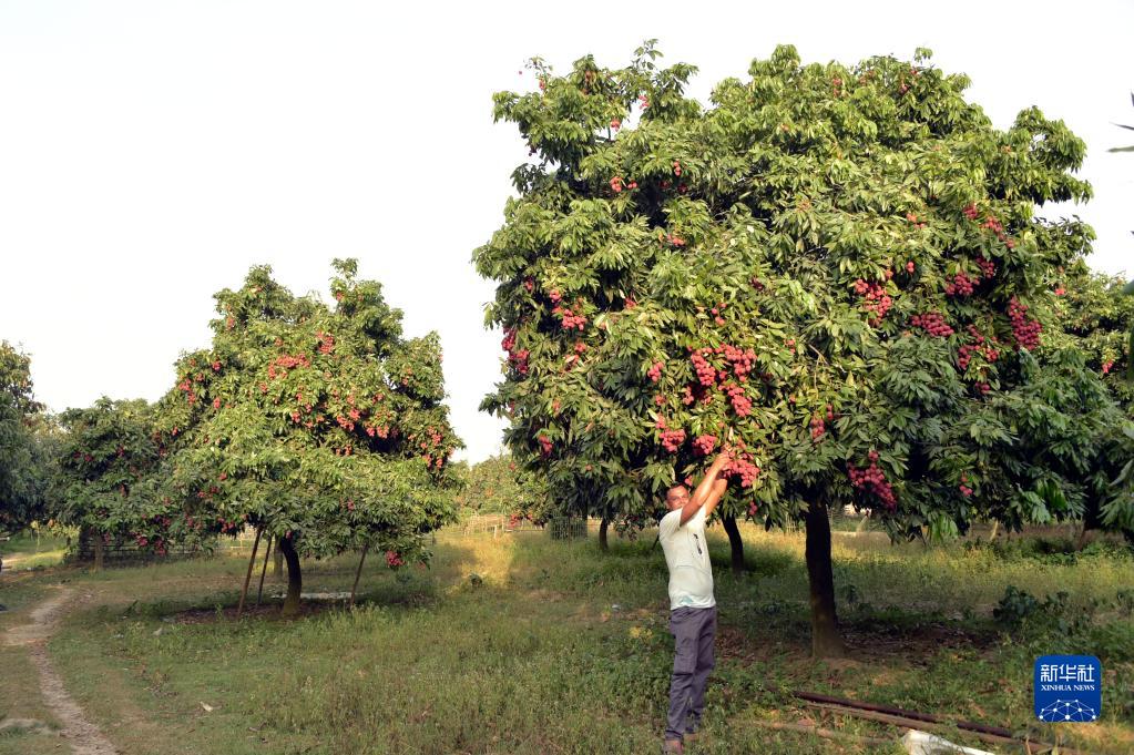 6月4日,農民在孟加拉國迪納杰布爾的果園里采摘荔枝。