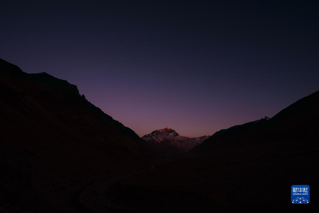 6月4日,最后一抹陽(yáng)光即將從珠峰頂上消逝。
