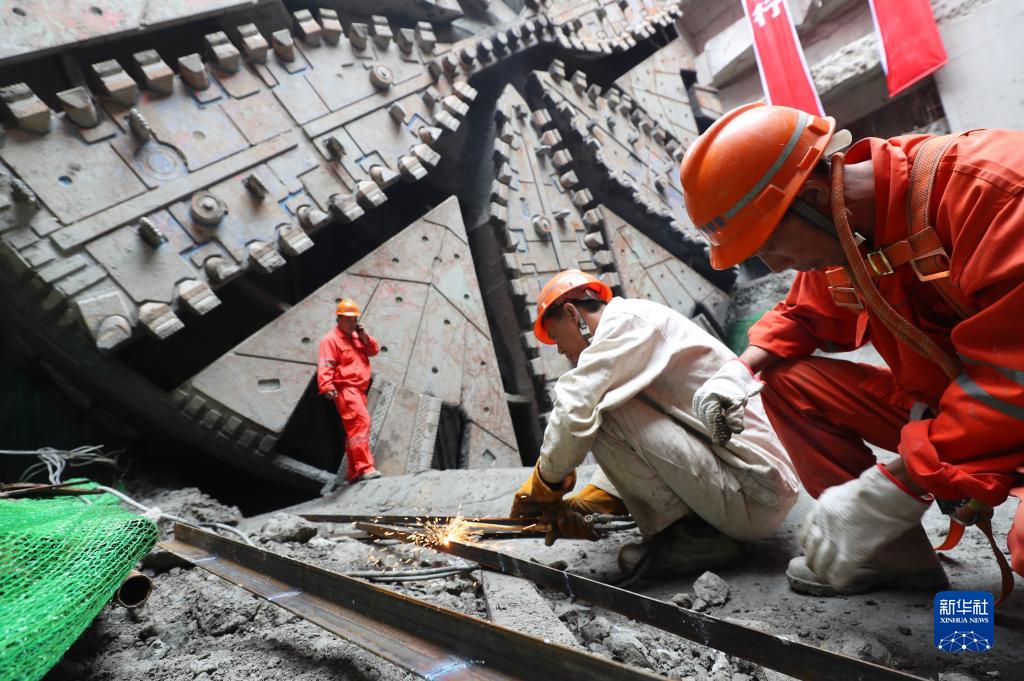 6月6日,施工人員在北橫通道新建工程Ⅷ標段安國路井內進(jìn)行“縱橫號”盾構接收準備工作。