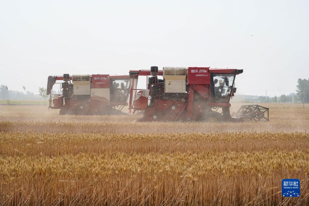 6月6日,農機手在現場(chǎng)駕駛收割機進(jìn)行機收減損比武競賽。