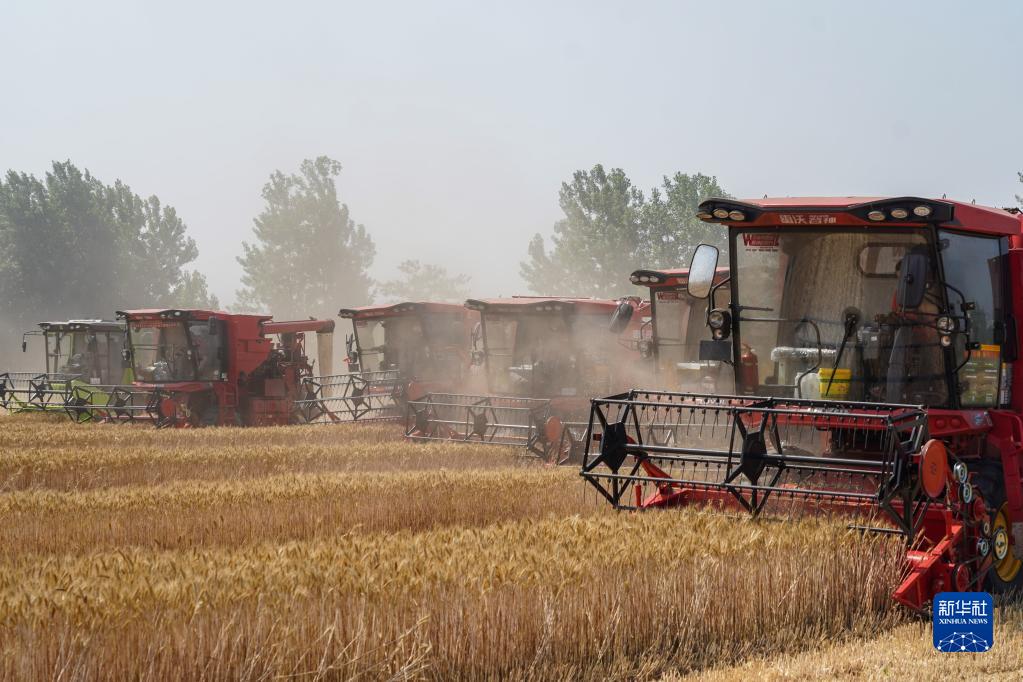6月6日,農機手在現場(chǎng)駕駛收割機進(jìn)行機收減損比武競賽。