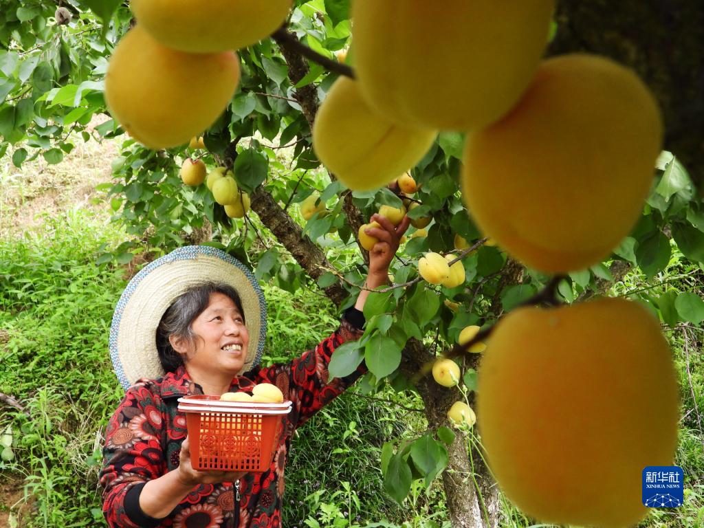 6月6日,果農在四川省達州市宣漢縣普光鎮杏樹(shù)村2組的種植基地里采摘巴山紅杏。