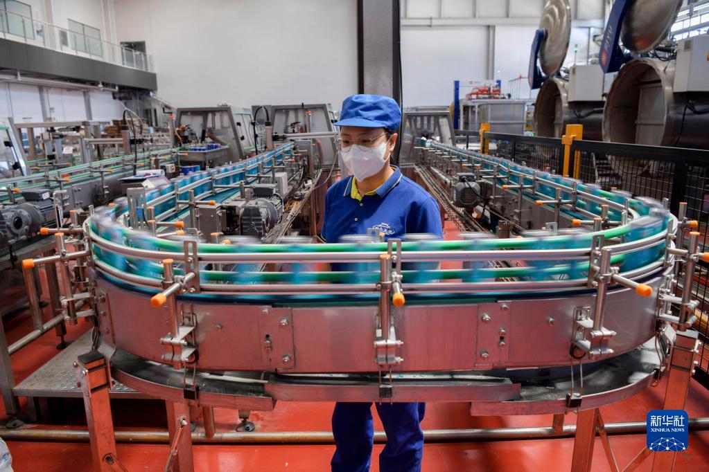 6月6日,在承德縣六溝鎮一家杏仁深加工企業(yè)包裝車(chē)間,工人在查看生產(chǎn)線(xiàn)運轉情況。