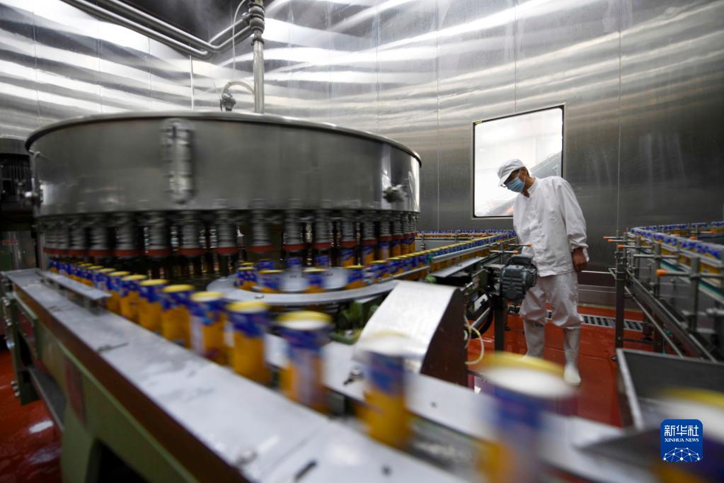 6月6日,在承德縣一家杏仁深加工企業(yè)灌裝車(chē)間,工人在查看灌裝完成的杏仁露。
