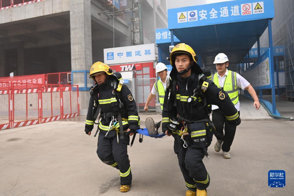 當日,浙江省杭州市富陽(yáng)區“安全生產(chǎn)月”消防應急演練在中建三局富陽(yáng)銀湖生物信息產(chǎn)業(yè)園項目工地啟動(dòng),現場(chǎng)進(jìn)行火災撲救、人員施救等環(huán)節的演練,以提升安全生產(chǎn)應急能力。