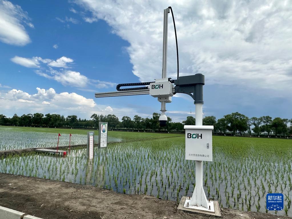 6月5日在北大荒集團黑龍江閆家崗農場(chǎng)有限公司的一處稻田拍攝的葉齡診斷儀。