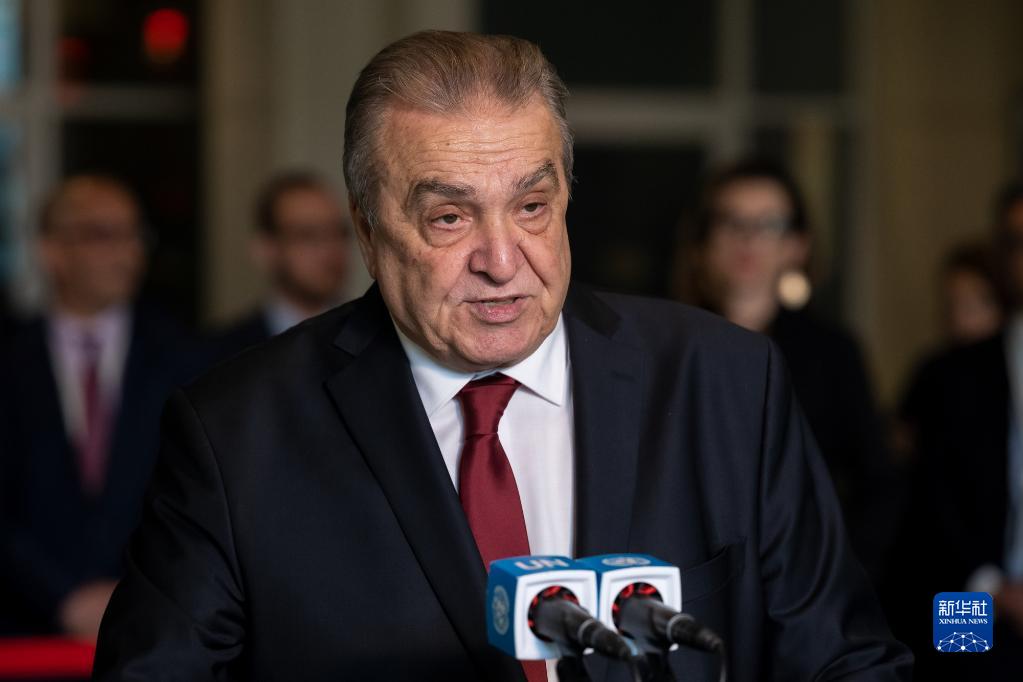 6月6日,在位于紐約的聯(lián)合國總部,阿爾及利亞常駐聯(lián)合國代表阿馬爾·本賈瑪在阿爾及利亞當選聯(lián)合國安理會(huì )非常任理事國后在記者見(jiàn)面會(huì )上講話(huà)。