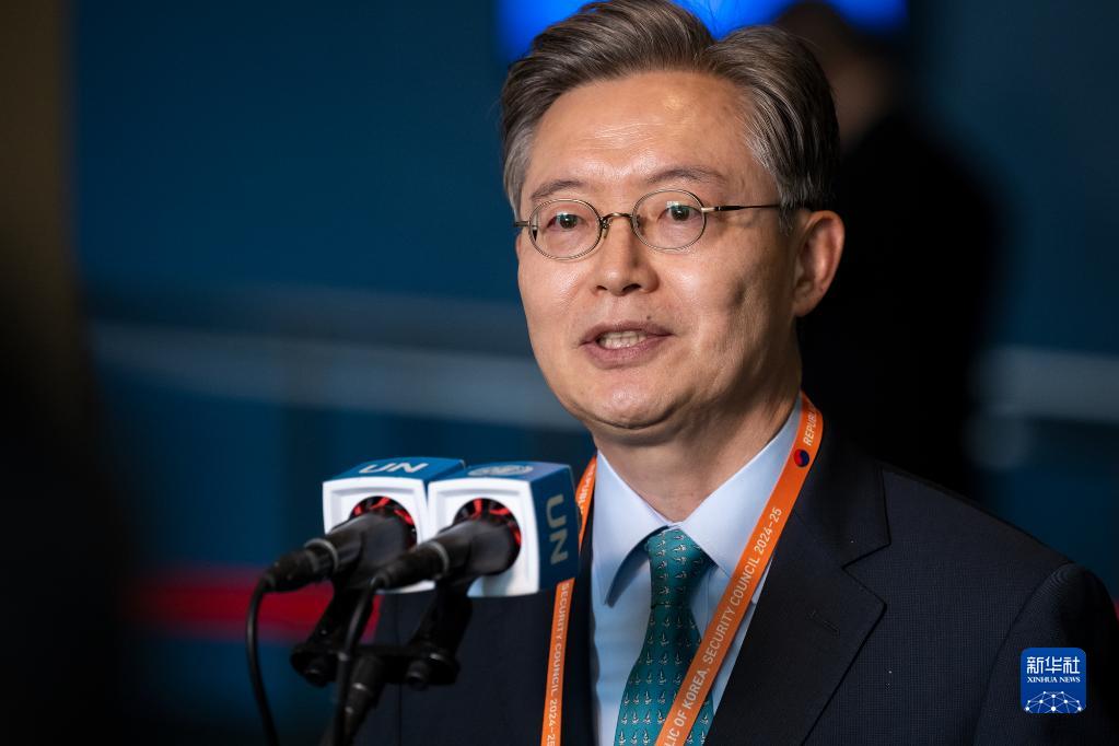 6月6日,在位于紐約的聯(lián)合國總部,韓國常駐聯(lián)合國代表黃浚局在韓國當選聯(lián)合國安理會(huì )非常任理事國后在記者見(jiàn)面會(huì )上講話(huà)。