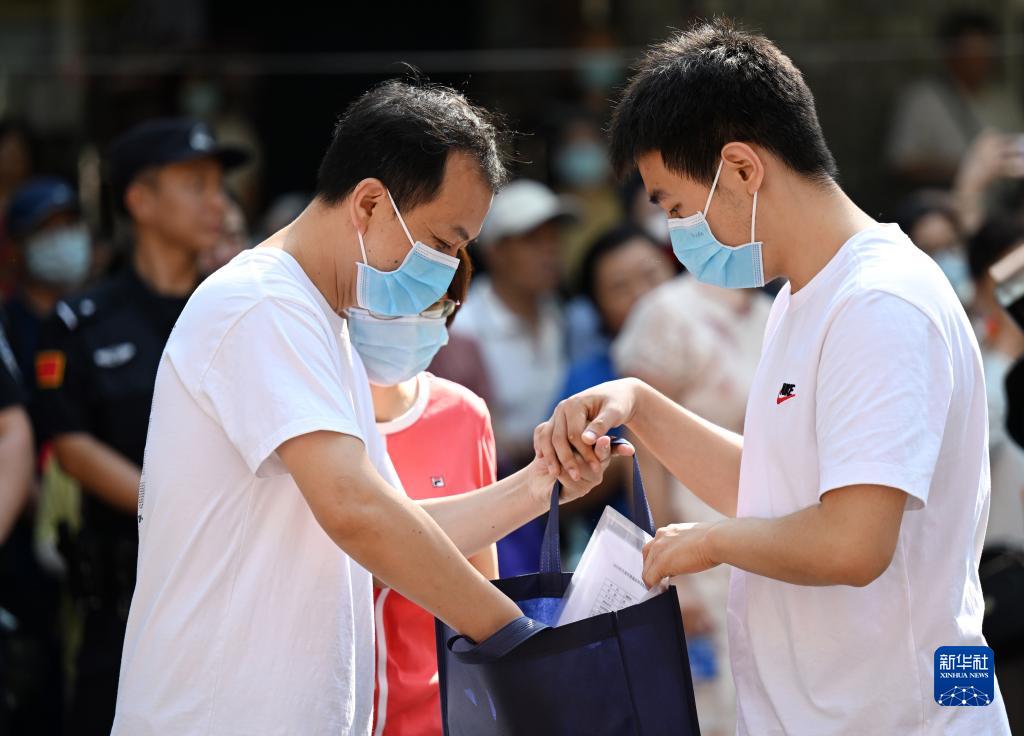 6月7日,在天津市耀華中學(xué)考點(diǎn),一名考生在入場(chǎng)前和家長(cháng)交流。