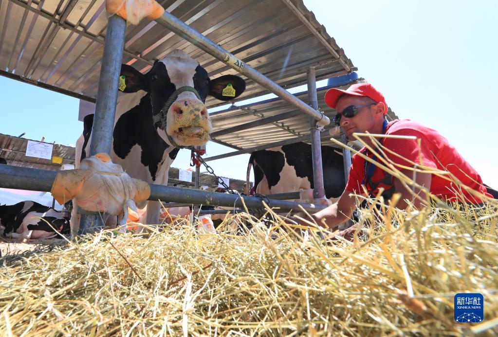 這是6月6日在白俄羅斯明斯克中白工業(yè)園拍攝的2023白俄羅斯國際農業(yè)展上的奶牛。