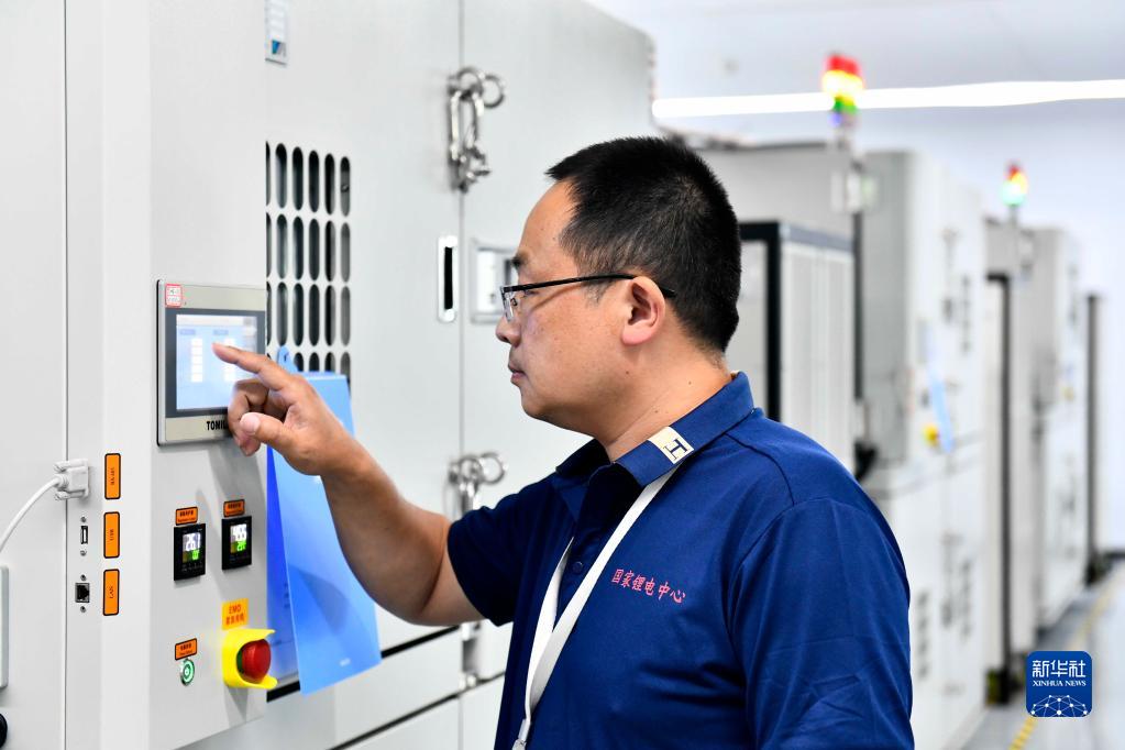 6月6日,在棗莊市國家鋰電池產(chǎn)品質(zhì)量檢驗檢測中心,工作人員對鋰電池進(jìn)行檢驗。