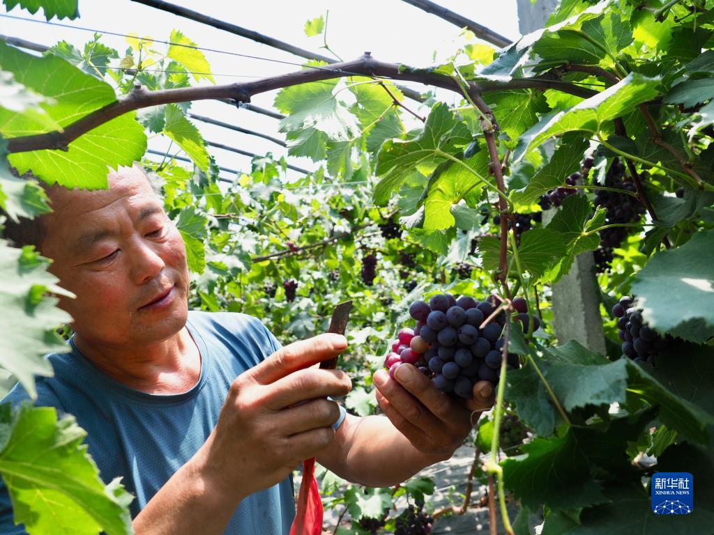 初夏時(shí)分,山東省濱州市濱城區楊柳雪鎮西辛莊村果蔬大棚內的葡萄、甜瓜等水果陸續成熟,吸引不少游客前來(lái)采摘。