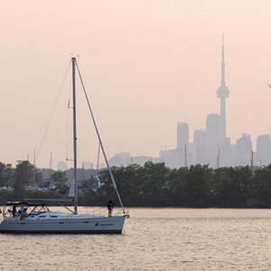 6月6日,加拿大多倫多市區籠罩在煙塵中。