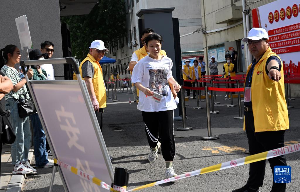 當日,2023年高考首場(chǎng)開(kāi)考前,在河南省鄭州市黃河科技學(xué)院附屬中學(xué)考點(diǎn),一名考生走錯考點(diǎn),執勤的警察緊急將該考生送往她的考點(diǎn)。