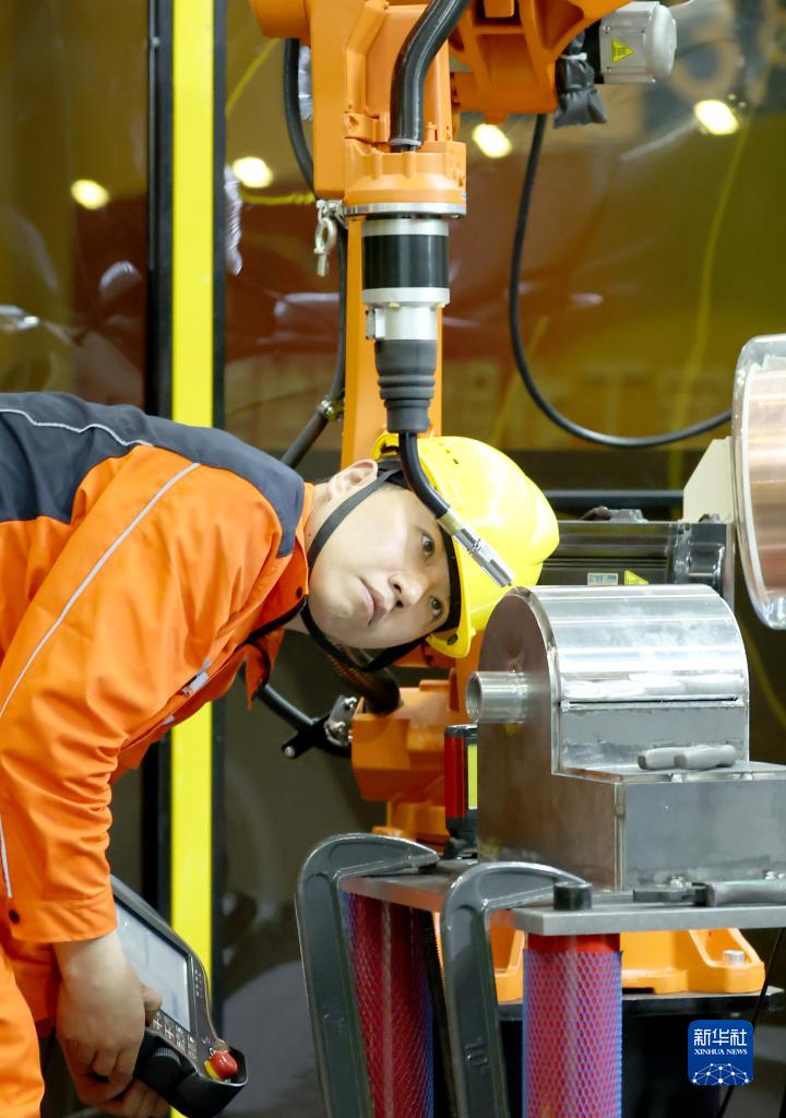 6月7日,參賽選手在焊接設備操作工—機器人項目的比賽中。