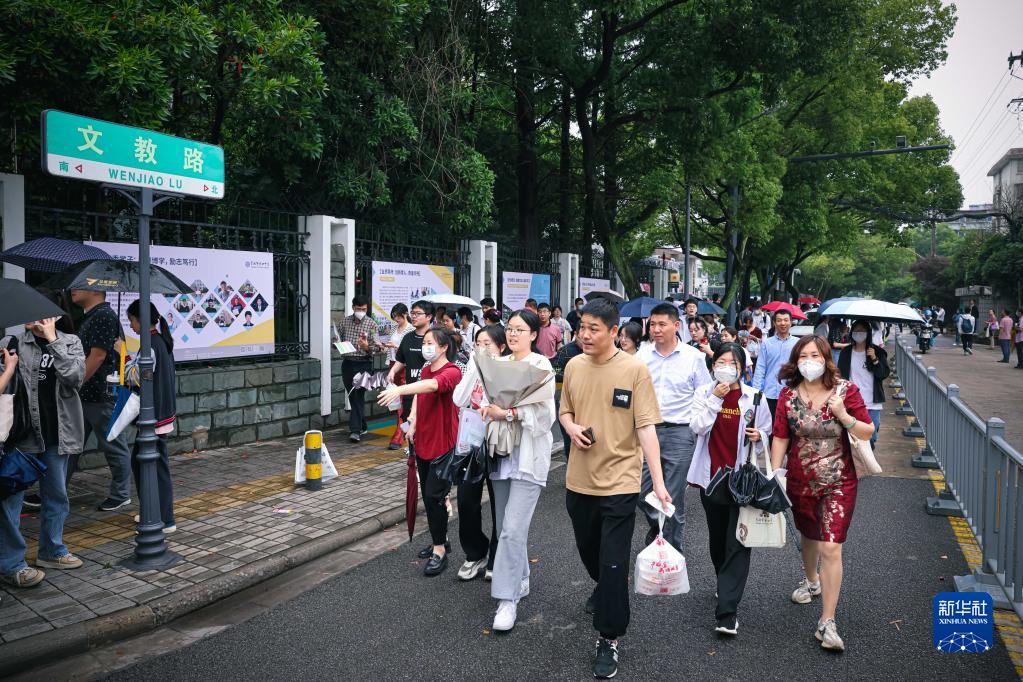 6月7日,考生與家長(cháng)在結束第一場(chǎng)考試后離開(kāi)寧波四中考場(chǎng)。