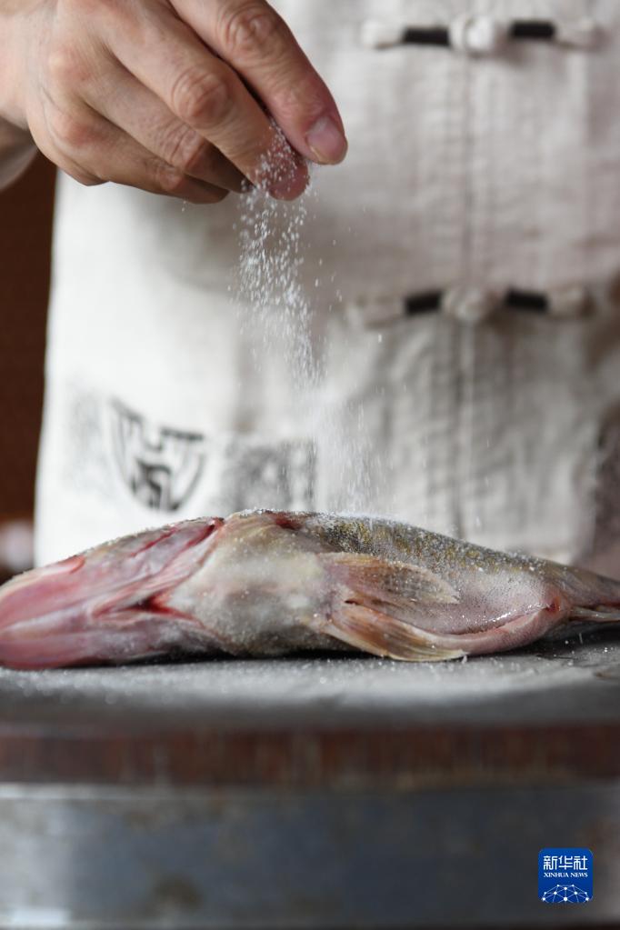 6月1日,在安徽省黃山市一家百年徽菜老店里,店主鐘少華在進(jìn)行臭鱖魚(yú)的腌制。他是徽州臭鱖魚(yú)制作技藝非遺傳承人。
