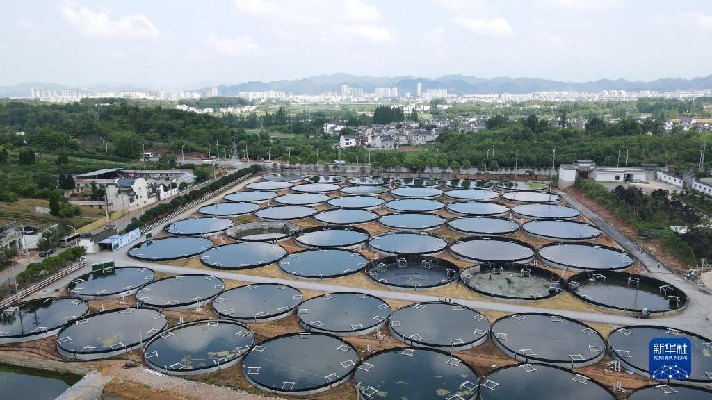 這是6月1日在安徽省黃山市歙縣拍攝的一家鱖魚(yú)養殖基地(無(wú)人機照片)。