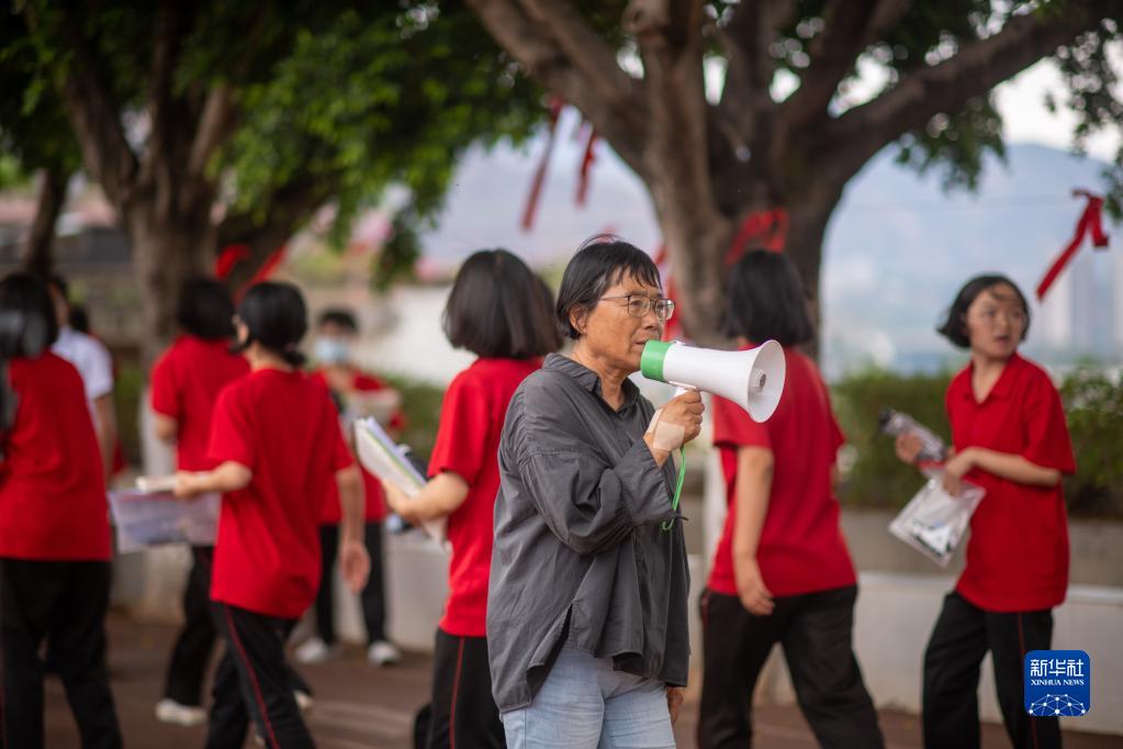 6月7日,張桂梅組織走出考場(chǎng)的學(xué)生準備返回學(xué)校。