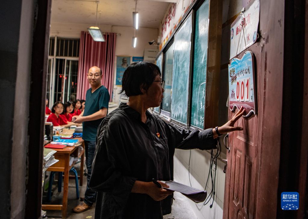 6月6日,高考前一天,張桂梅在檢查畢業(yè)班學(xué)生的學(xué)習情況。