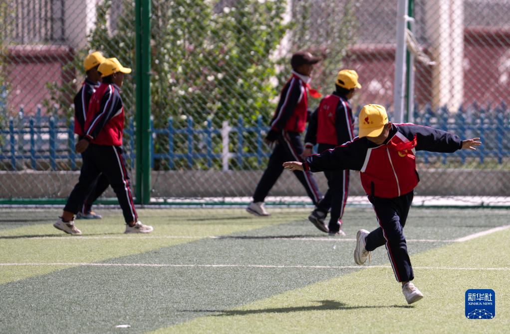 6月5日,扎西宗鄉完全小學(xué)的學(xué)生在上體育課。新華社記者 費茂華 攝