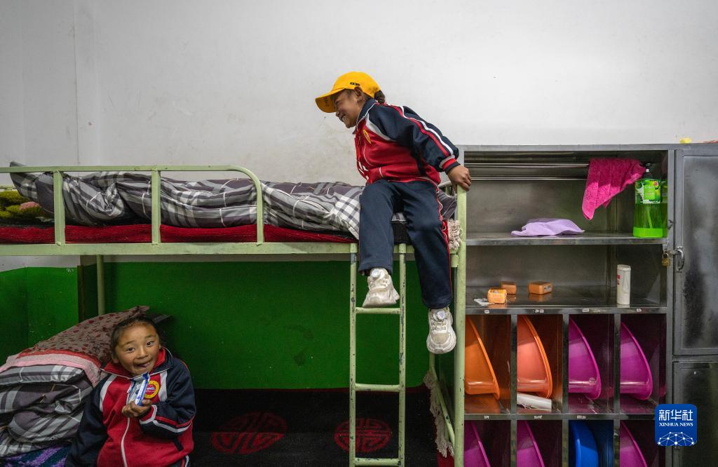 6月5日,扎西宗鄉完全小學(xué)的學(xué)生在宿舍準備就寢。新華社記者 費茂華 攝