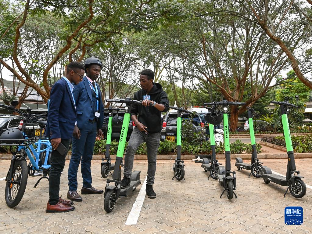 6月6日,在聯(lián)合國位于肯尼亞首都內羅畢的辦事處,人們在低碳和電動(dòng)交通載具展上參觀(guān)體驗電動(dòng)滑板車(chē)。