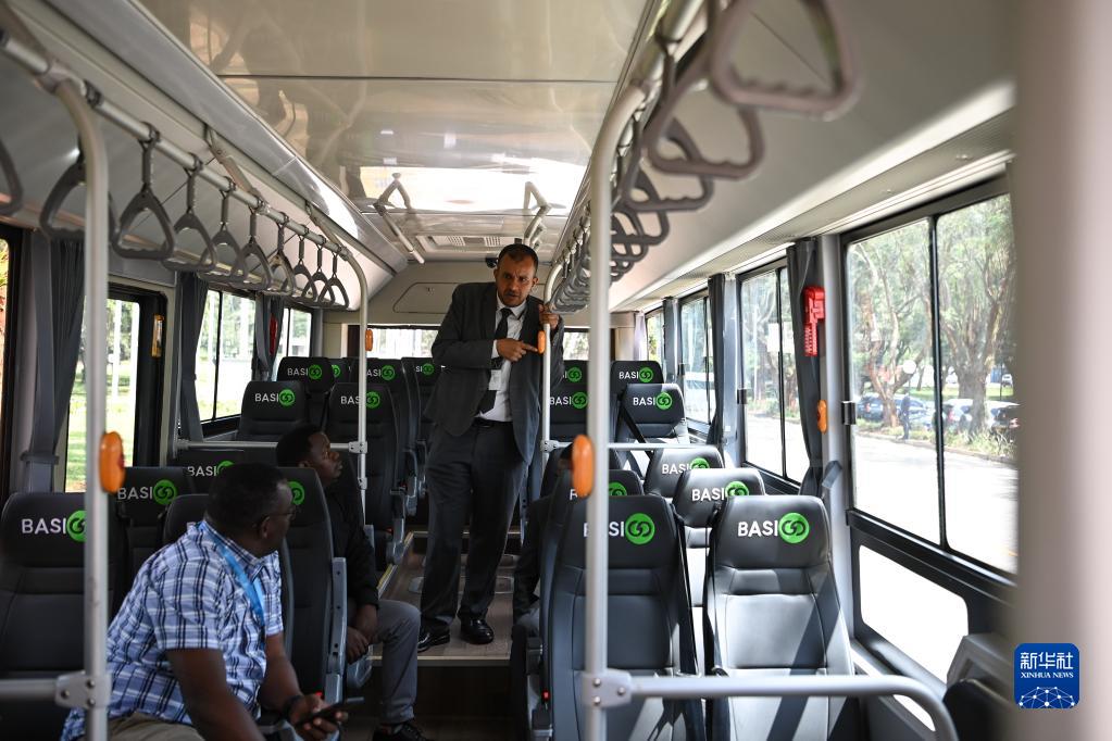 6月7日,在聯(lián)合國位于肯尼亞首都內羅畢的辦事處,人們在低碳和電動(dòng)交通載具展上參觀(guān)電動(dòng)公交車(chē)。