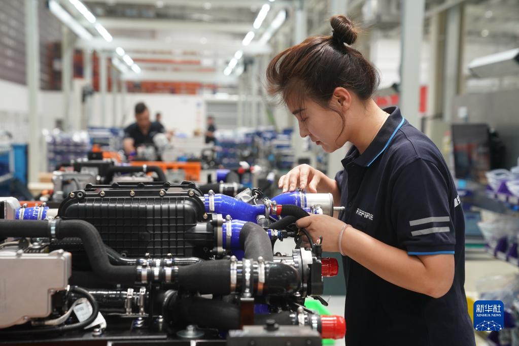 6月7日,在位于常熟的江蘇重塑能源科技有限公司,員工在生產(chǎn)線(xiàn)上對氫燃料電池系統進(jìn)行質(zhì)檢。