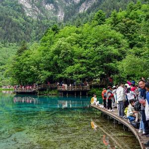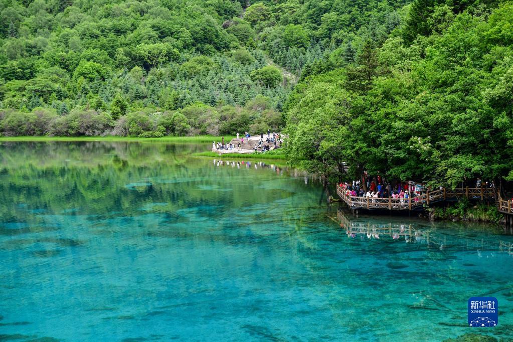 進(jìn)入6月,世界自然遺產(chǎn)九寨溝景區山巒疊翠,飛瀑爭喧。截至6月8日,九寨溝景區2023年游客接待量超120萬(wàn)人次。