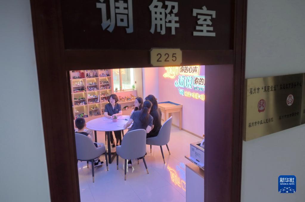 6月8日,服務(wù)團隊成員在福州中院“茉莉姐姐”家庭教育指導中心為婚姻家事案件當事人進(jìn)行調解和家庭教育指導。