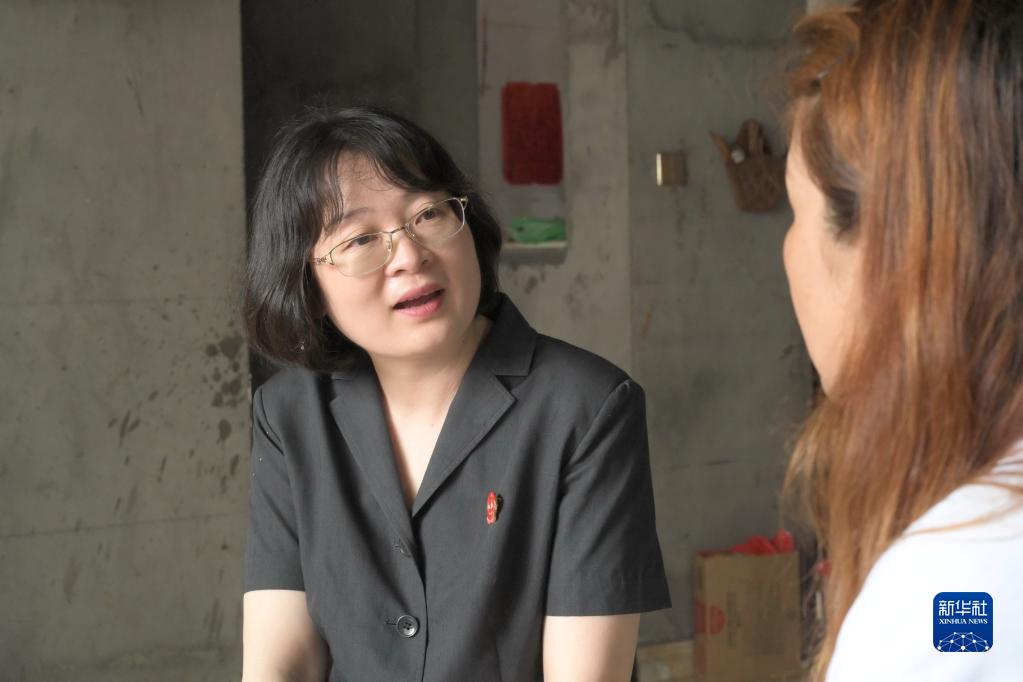 6月8日,“茉莉姐姐”服務(wù)團隊成員、福州市中級人民法院少年庭法官林菁菁在一位未成年當事人家中向其母親了解情況。