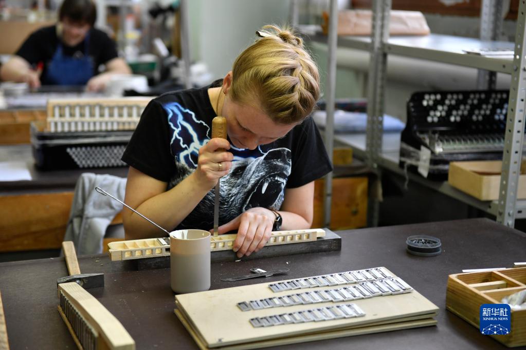 6月7日,工作人員在俄羅斯圖拉組裝巴揚手風(fēng)琴。