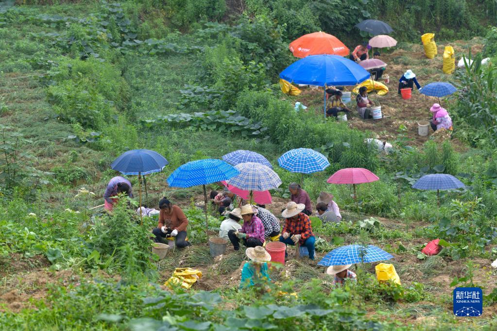 6月8日,在豐都縣虎威鎮大池社區的藠頭田,當地村民在種植大戶(hù)的組織下集體采收藠頭。